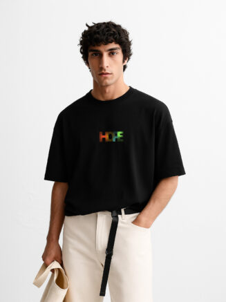 OVERSIZED FIT: Relaxed, roomy silhouette with dropped shoulders and extended sleeves for a contemporary streetwear aesthetic