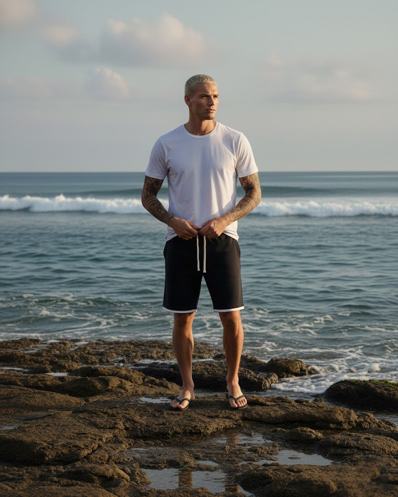 Designed for slow mornings and sharp arrivals. The Co-ord Set Coastal Uniform blends relaxed structure with refined comfort, crafted in premium cotton terry for an effortless drape. A contrast-panel tee paired with clean-lined joggers creates a look that moves seamlessly from city streets to waterfront escapes. Elevated, intentional, and understated.
