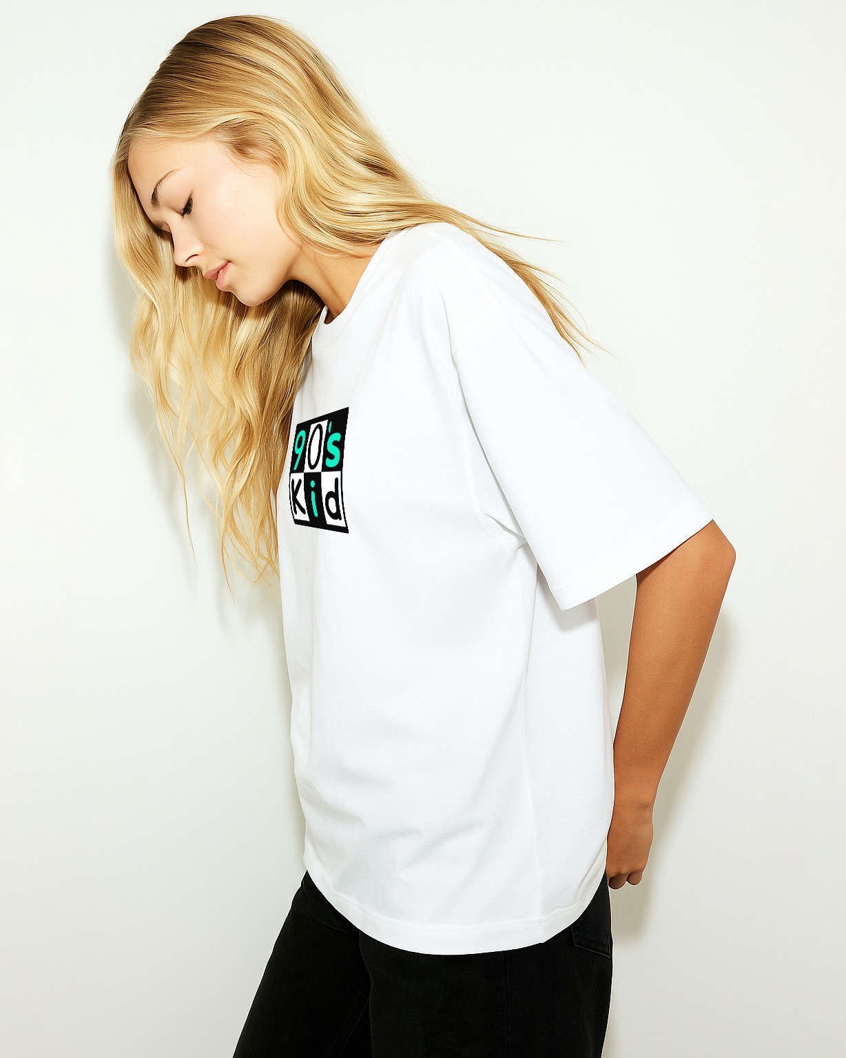 GrphX Oversized Cotton T-Shirt – 90’s Kid Retro Graphic Oversized White T-Shirt