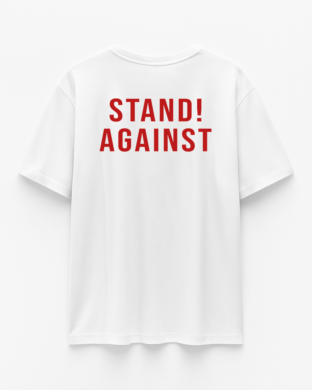 Back print: “STAND! AGAINST” slogan