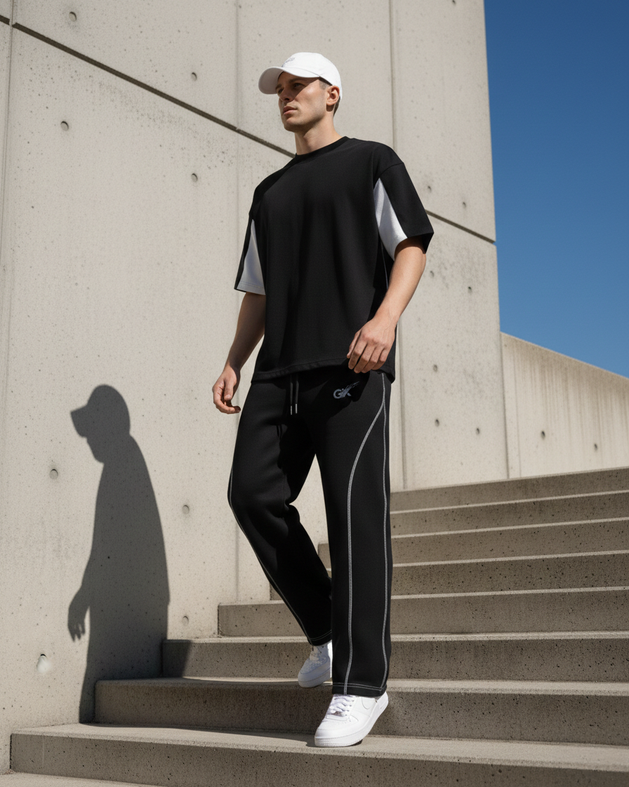 Designed for the street, built with substance. The Co-ord Set Street Essential delivers heavyweight comfort with a sharp, modern edge. Featuring contrast panels, clean lines, and premium terry construction, this set is made to stand out without trying too hard. Wear it layered or solo—this is everyday streetwear done right.