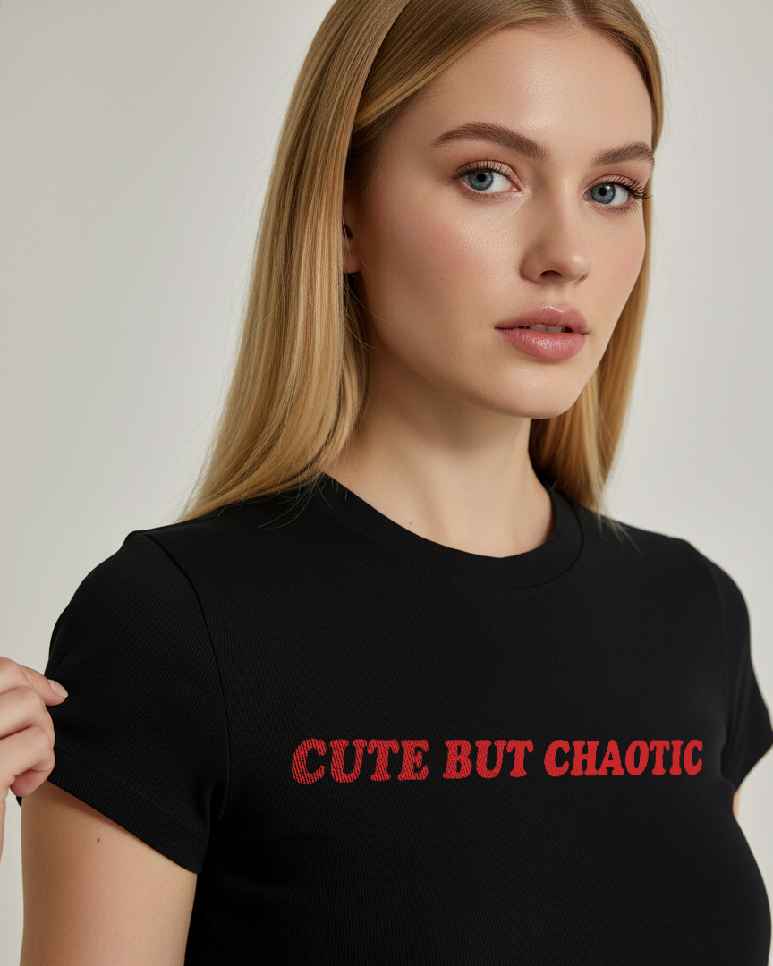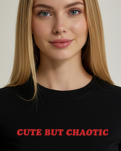 Print: Red “Cute but Chaotic” text