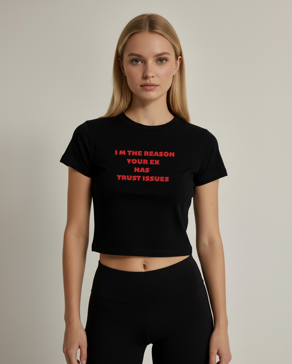 SKU: Women's Black Graphic Crop Top - "I m the reason...." Categories: ,